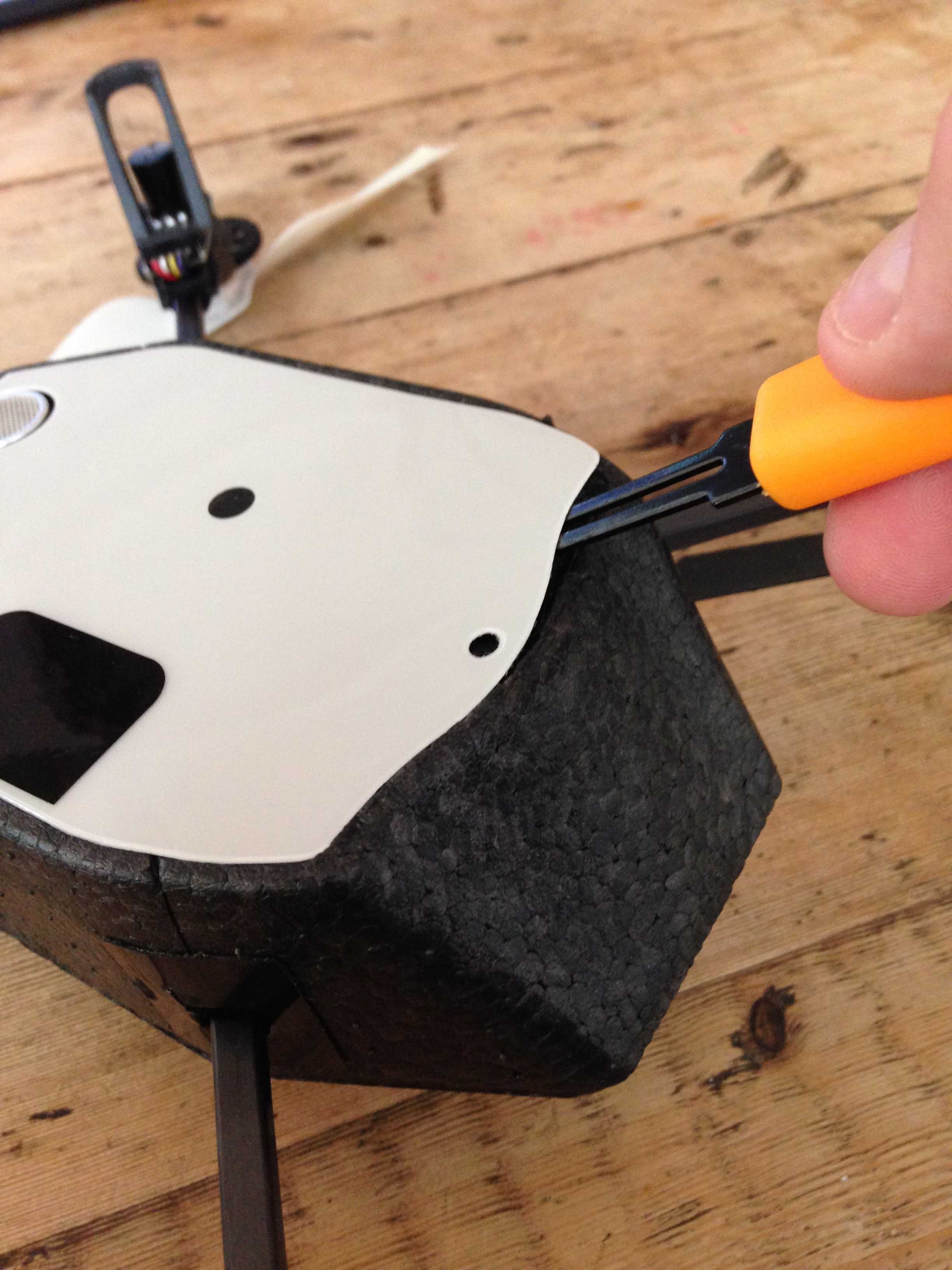 Step 4 of how to repair a Parrot AR Drone 2.0: Cut, detach, and slide out