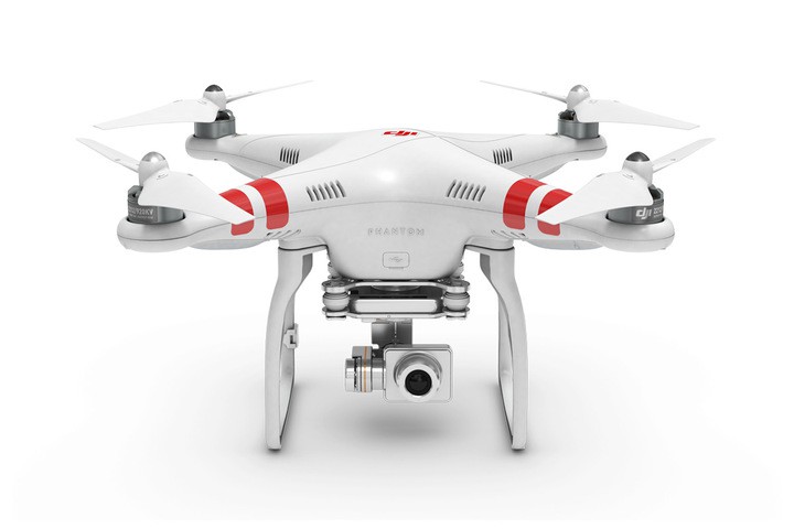 The drones featured here are small battery-charged aerial vehicles, normally weighing under 1000 grams. Most also come equipped with video cameras and handheld remote controls. Pictured below is the DJI Phantom 2 Vision+.
